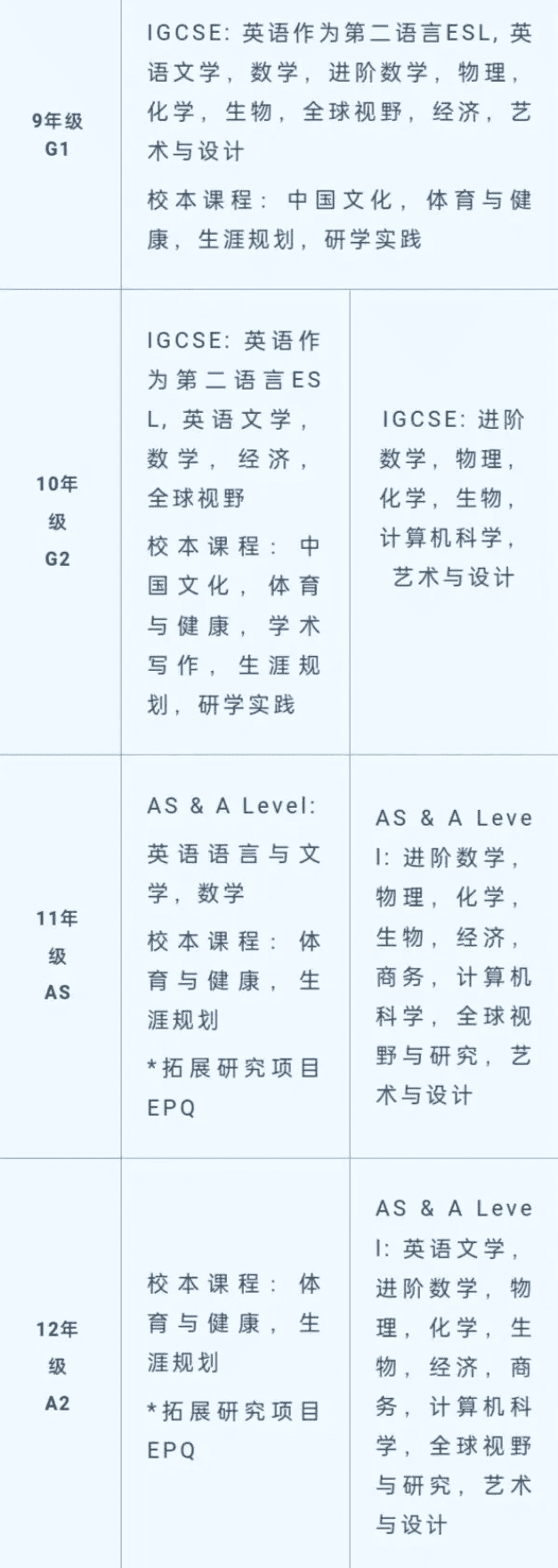 此外,對(duì)于新開設(shè)的IGCSE及A-Level課程班,學(xué)校還提供來自英國本土的資深學(xué)科教師、競(jìng)賽導(dǎo)師、升學(xué)導(dǎo)師,從學(xué)術(shù)、語言、競(jìng)賽等方面推進(jìn)落實(shí)具體的升學(xué)規(guī)劃。