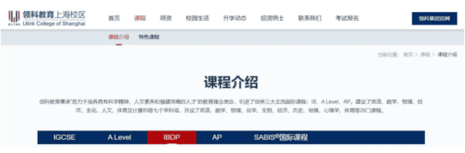 △上海領(lǐng)科官網(wǎng)關(guān)于學(xué)校課程介紹的部分截圖,其中AP課程為選修課,學(xué)校并未開設(shè)AP課程班;圖源:學(xué)校官網(wǎng)